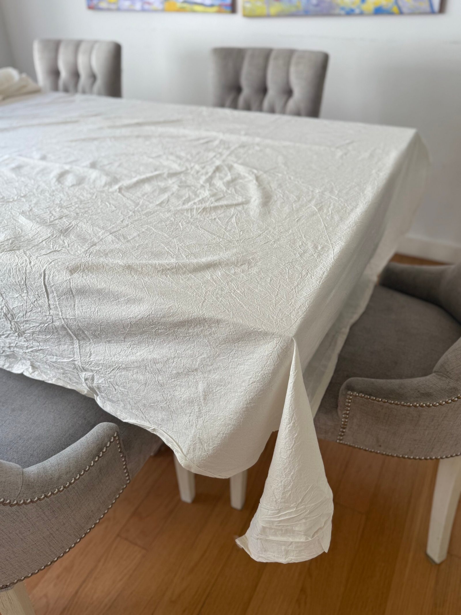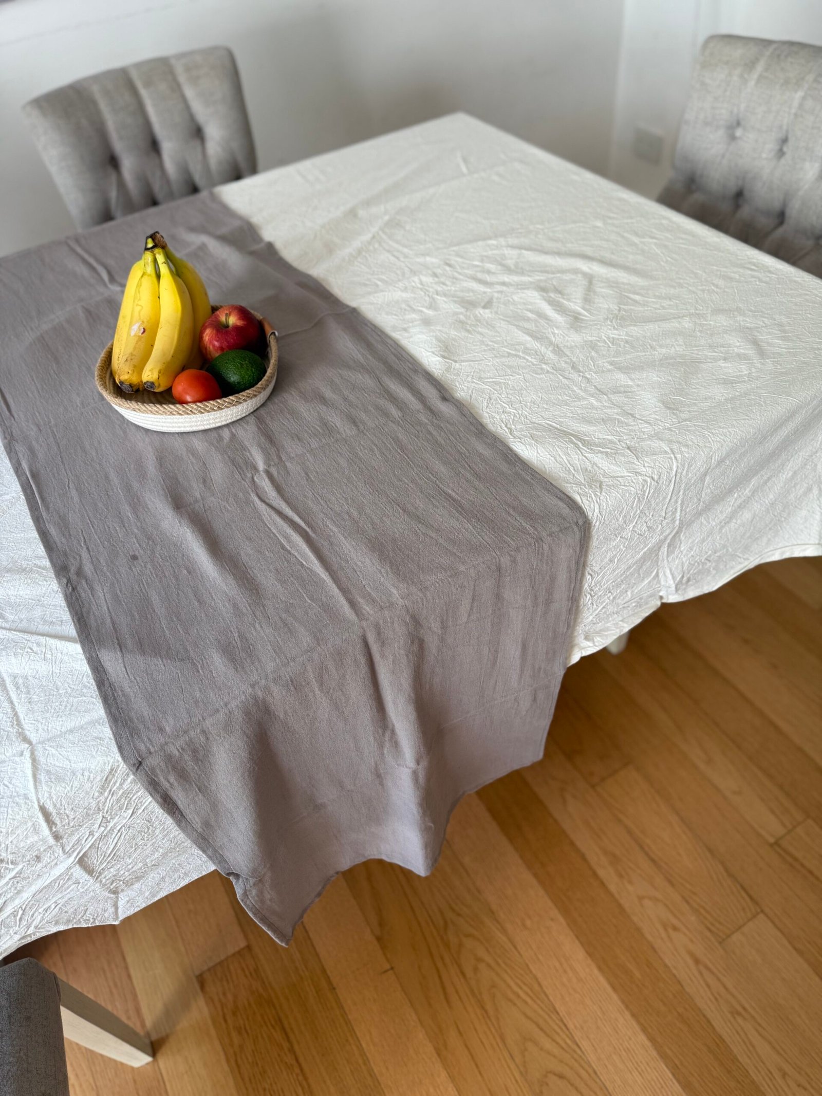 Nuestro mantel de tusor, confeccionado en puro algodón, aporta calidez y un estilo relajado a tu mesa.