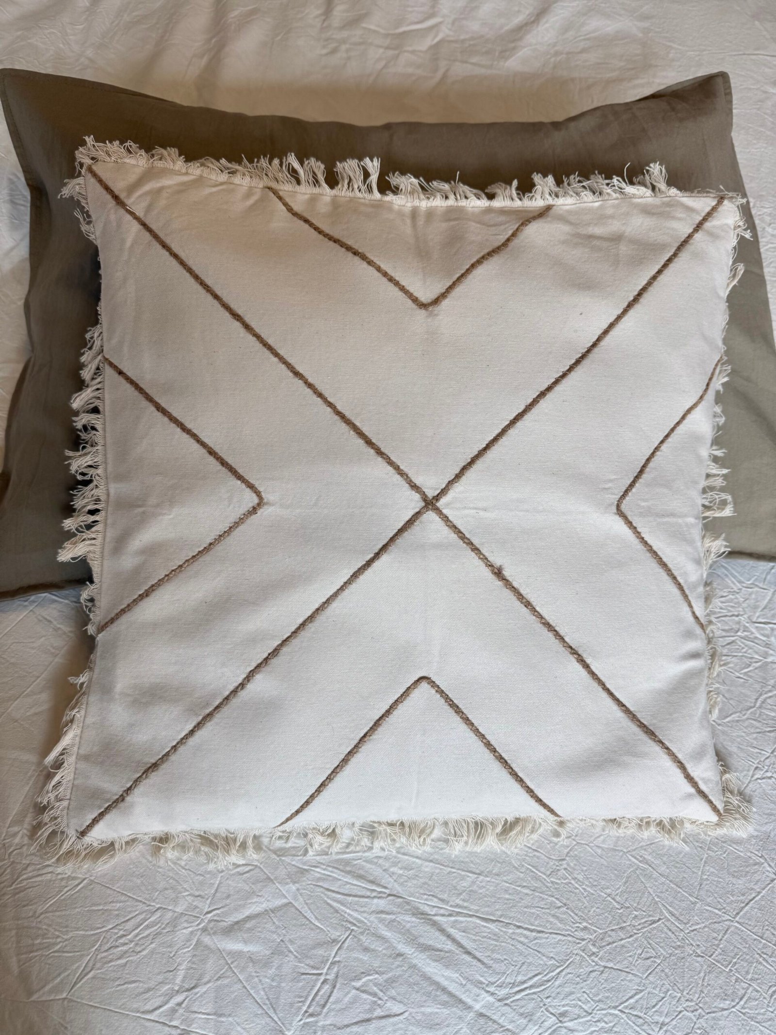 Nuestro almohadón Yute combina la suavidad del lienzo 100% algodón con detalles en yute natural, creando un contraste sutil y lleno de carácter.